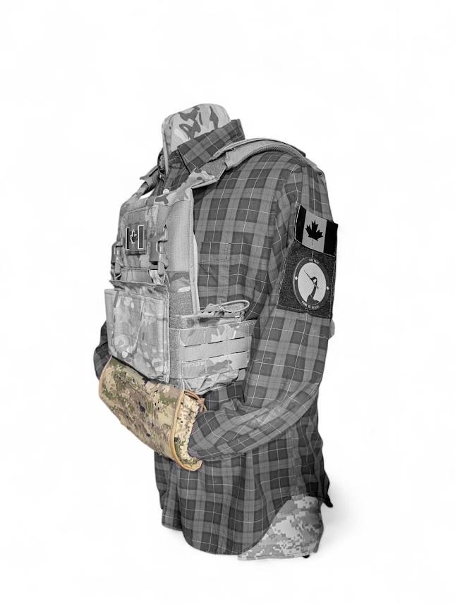 Plate carrier attached slick hand warmer.